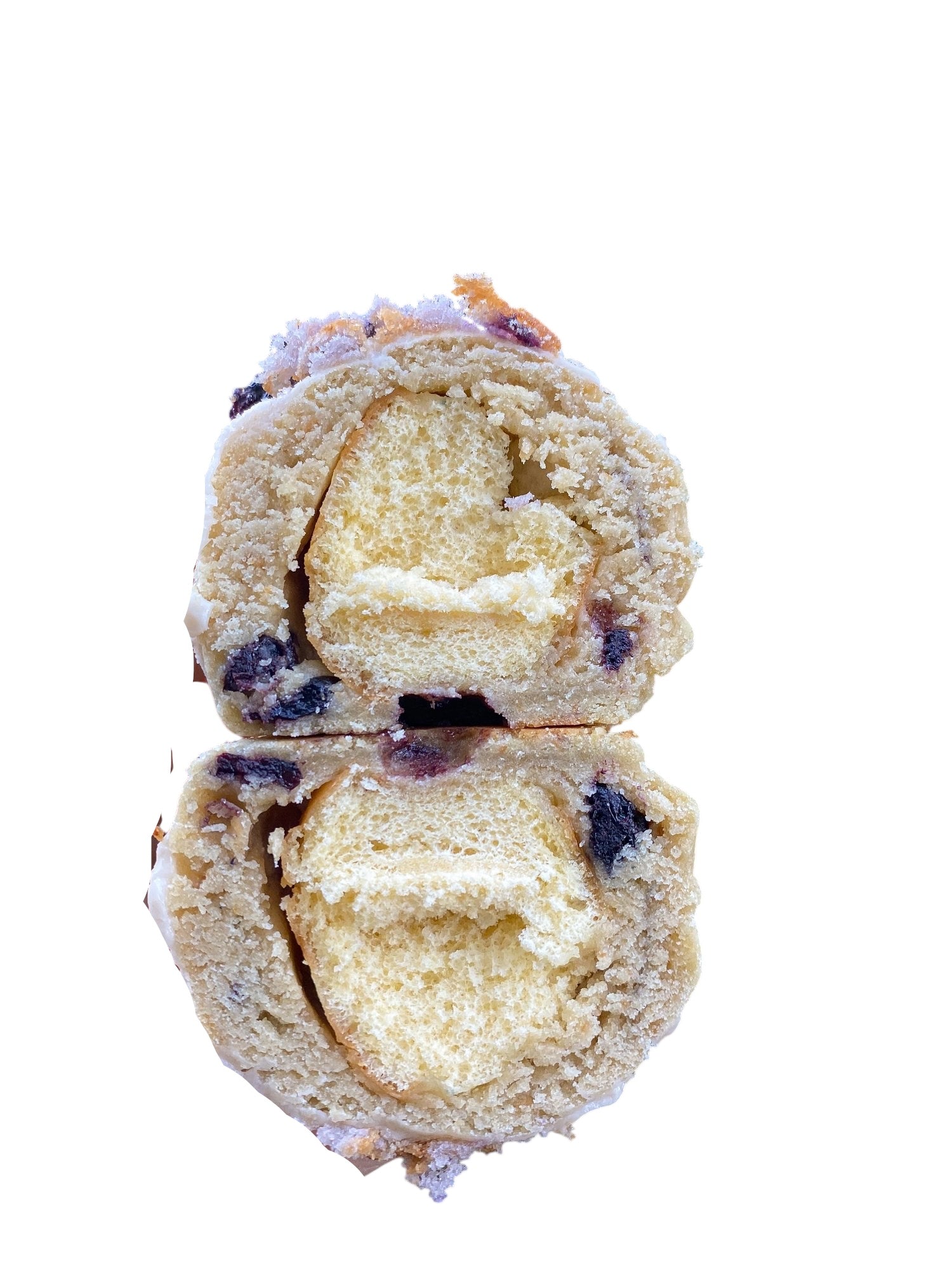 Dive into the playful delight of the Blueberry Doughnut Whole Stuffed Cookie! A subtly sweet blueberry biscuit dough packed with blueberry muffin bits and dried blueberries wraps around a glazed donut center. Topped with a luscious icing glaze and sprinkled with dried blueberries and muffin pieces, every bite bursts with blueberry goodness and fun textures that make this treat truly irresistible.